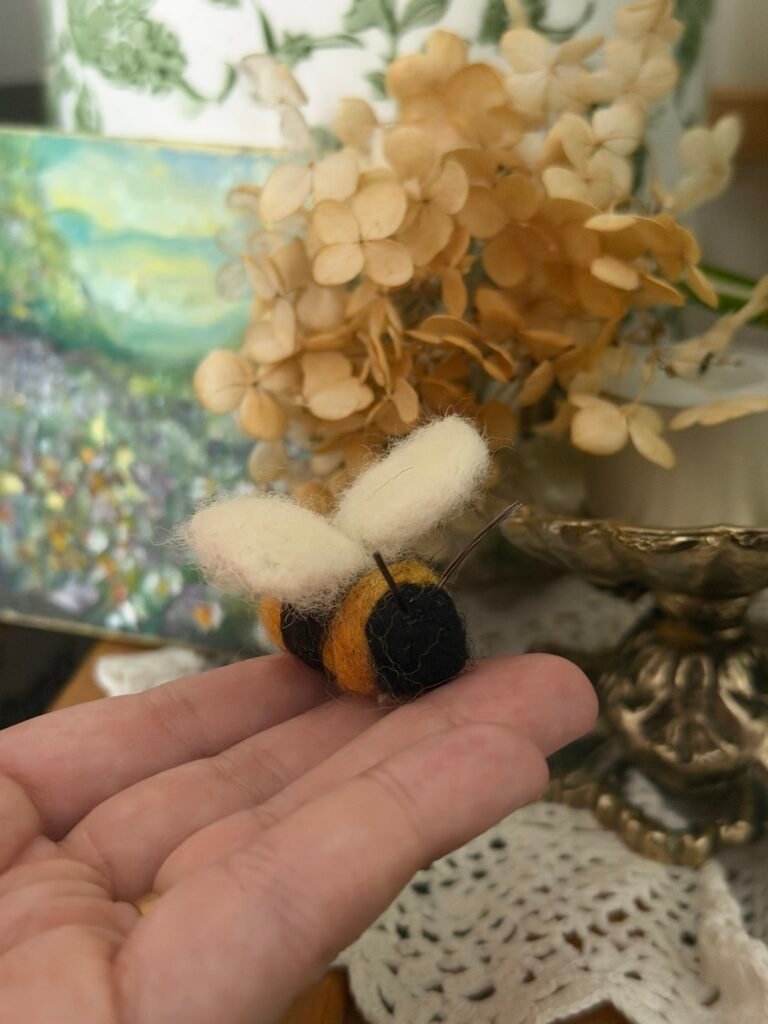 I have my little needle felted bee I made sitting amongst my house plants, it definitely adds a whimsical cutesy touch.