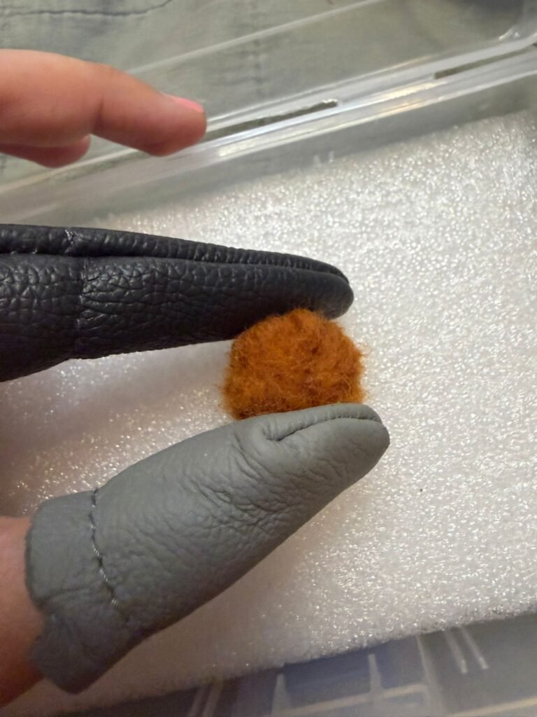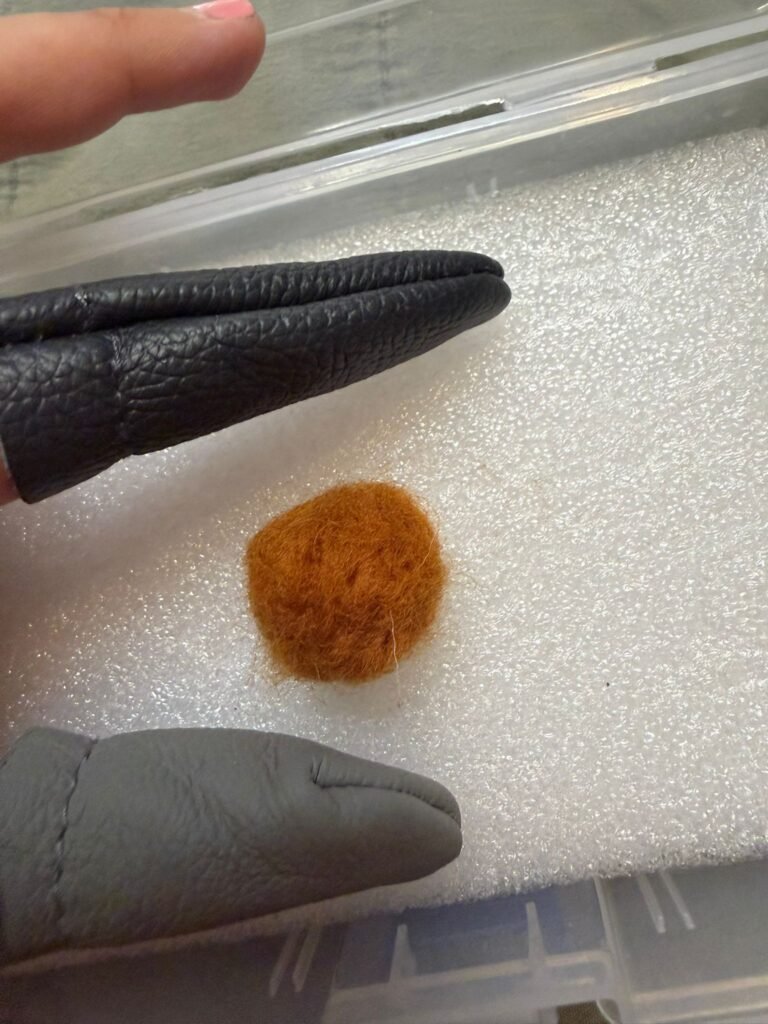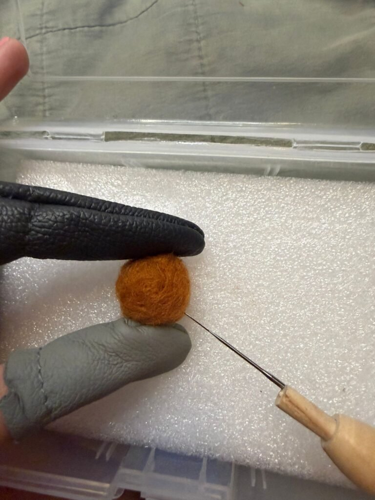 Once the wool starts to hold together, you can add small amounts of wool to build shape. Keep felting until the piece feels solid, but not too hard